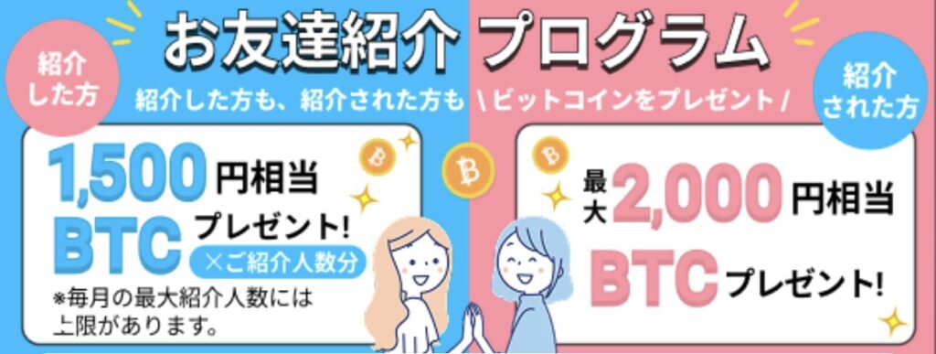 合計で最大2000円分のBTCを無料で受け取ることができます。